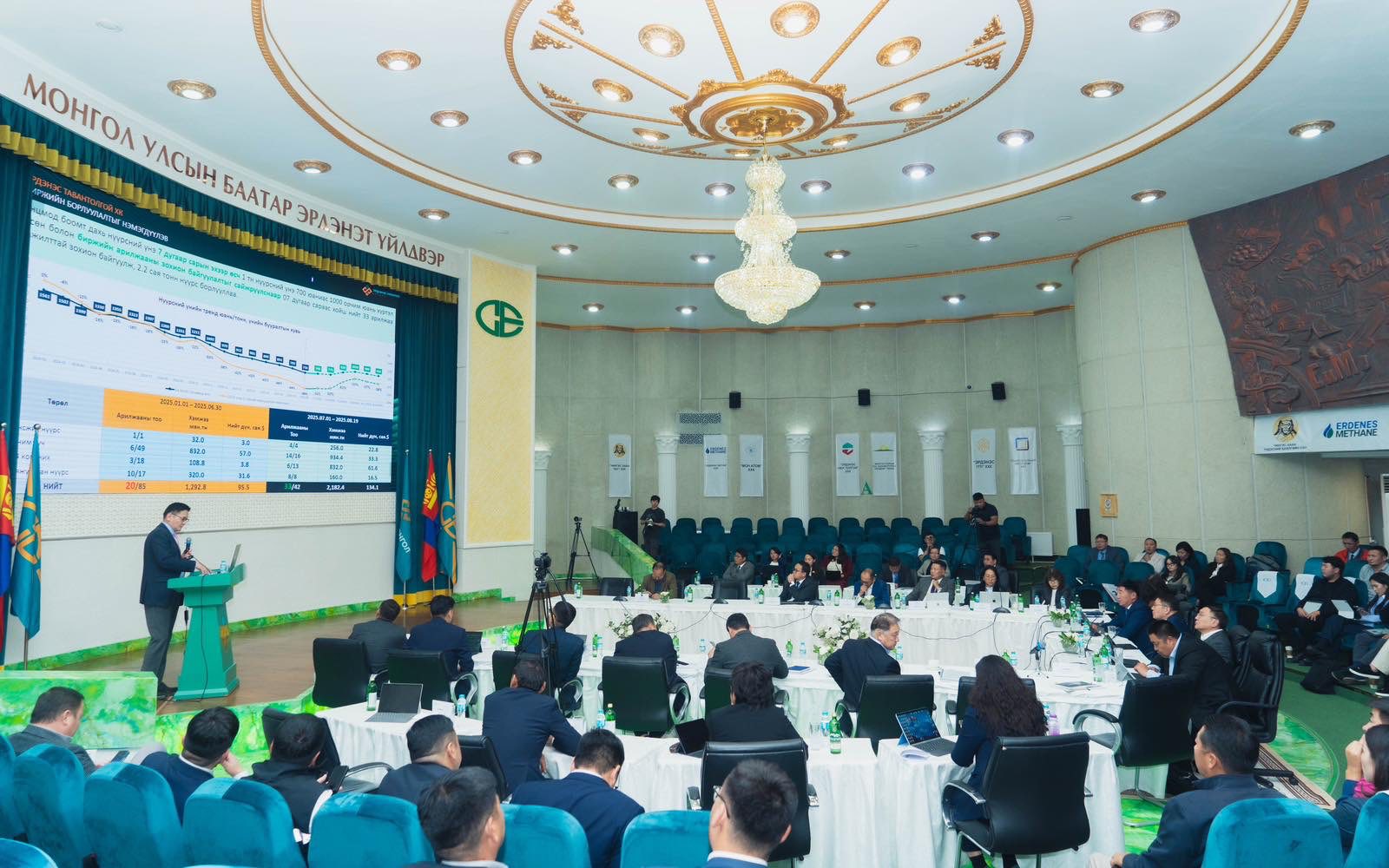 Монгол Улсын Сайд бөгөөд Засгийн газрын Хэрэг эрхлэг газрын дарга С.Бямбацогт, ЗГХЭГ-ын төлөөллүүд, “Эрдэнэс Монгол” ХХК-ийн Төлөөлөн Удирдах Зөвлөл, удирдлагууд, нэгдлийн охин, хараат компанийн удирдах ажилтнууд оролцож “Бүтээн байгуулалтын жил 2025” төлөвлөгөөт ажлын хагас жилийн гүйцэтгэл, үр дүнг танилцууллаа.
