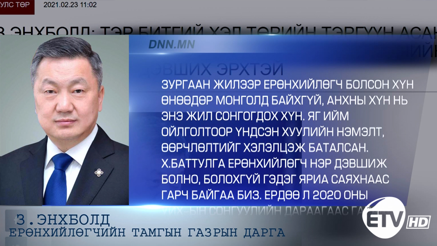 Тод мэдээ Улс төр З.Энхболд: АН одоогийн ерөнхийлөгчийг өрсөлдөгчгүйгээр нэр дэвшүүлэх ёстой. Энэ бол жишиг. 2021-02-232021-02-23 Admin